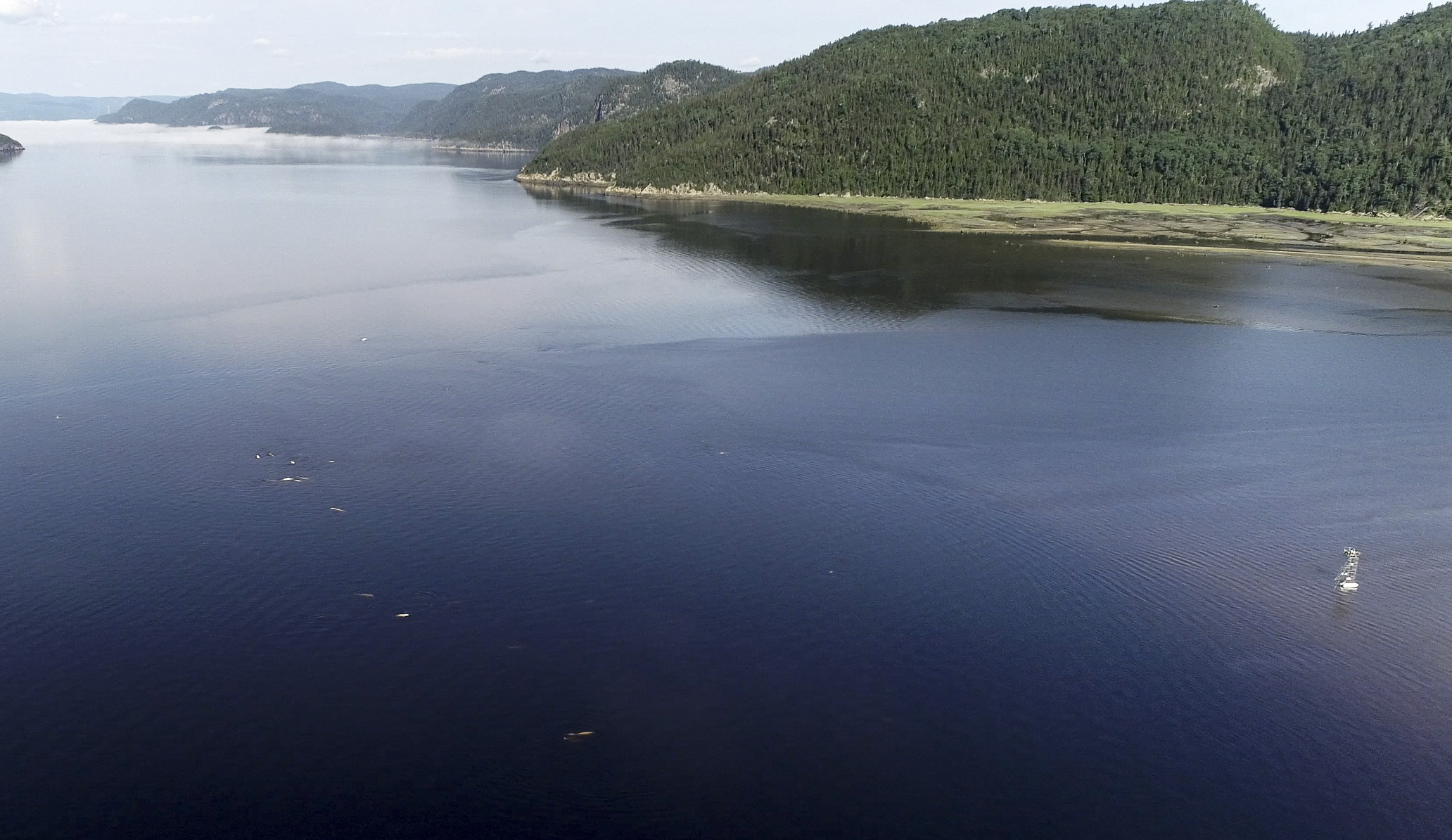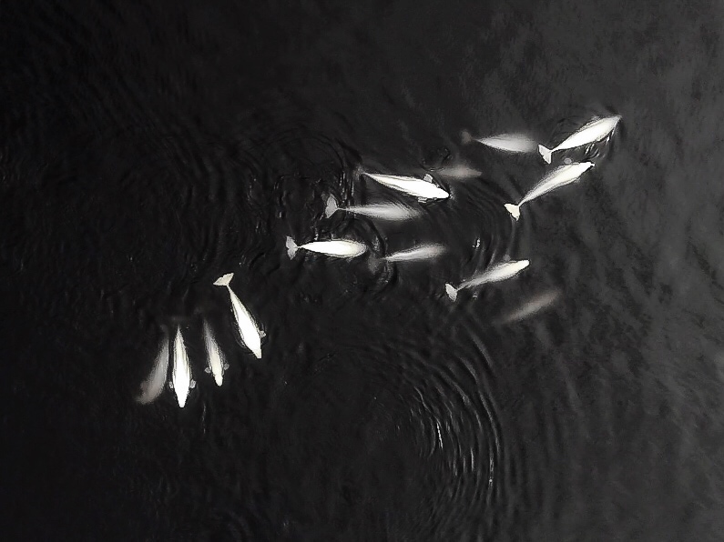 The images captured by drone are used to study the comings and goings of belugas and boats in Sainte-Marguerite Bay. Photo Credit: Ocean Wise & GREMM