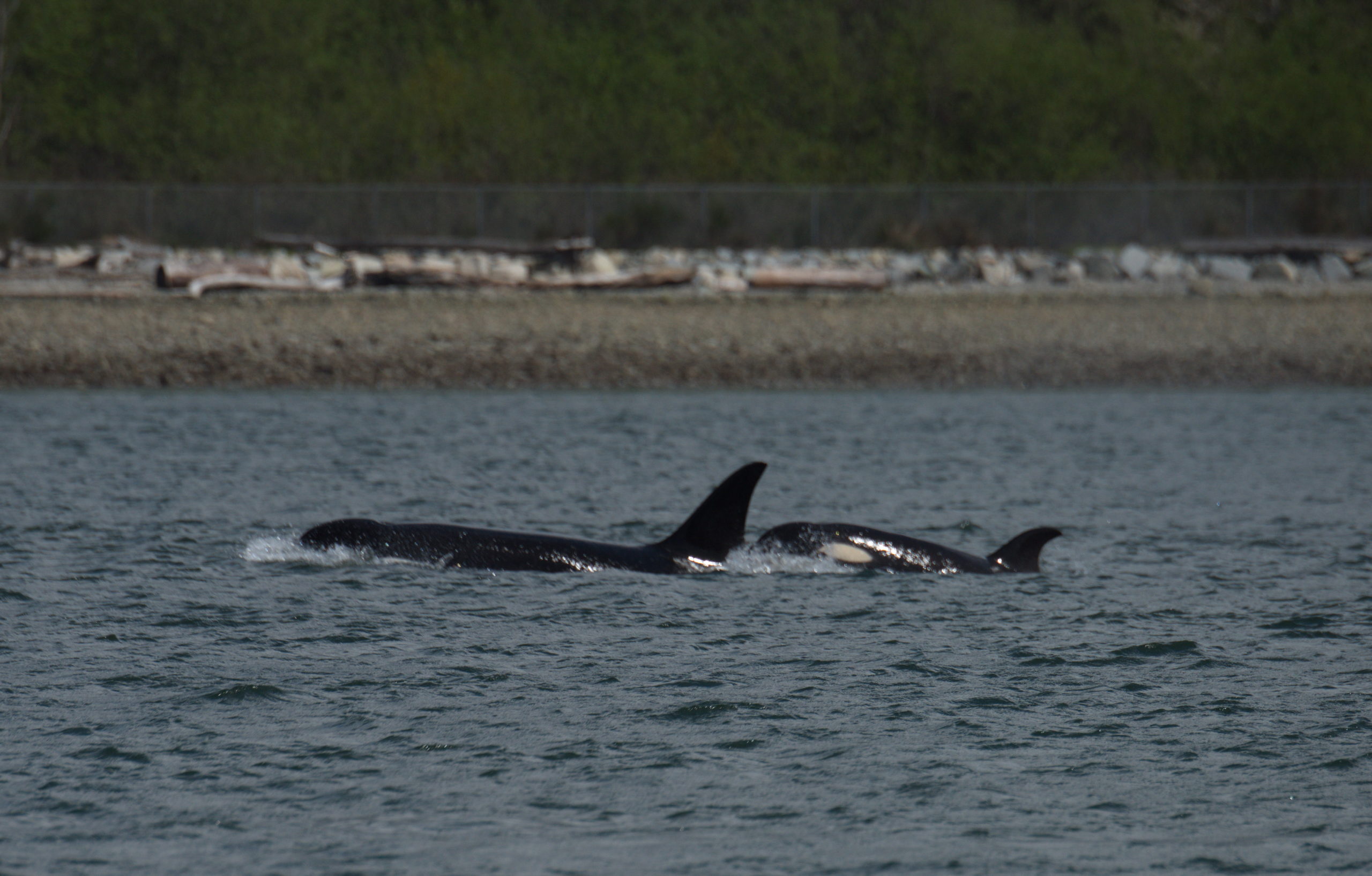 By looking at distinctive dorsal fins and saddle patches, members of Barrett-Lennard’s research team identified yesterday’s group of whales as the T049As. The group of five Bigg’s killer whales is comprised of matriarch T049A (a female born in 1986) and her four offspring: T049A1, an adult male born in 2001; T049A3, a juvenile male born in 2011; T049A4, born in 2014 – unknown sex; and T049A5, born in 2017 – unknown sex.