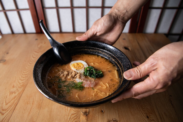 Lately, I’ve been working and finishing up creating Dungeness crab ramen featuring a very flavourful broth made with crab shells, Haida Gwaii kombu, Vancouver Island smoked sea salt, topped with crab leg meat, local mizuna, garlic, green onion, and a half boiled egg.