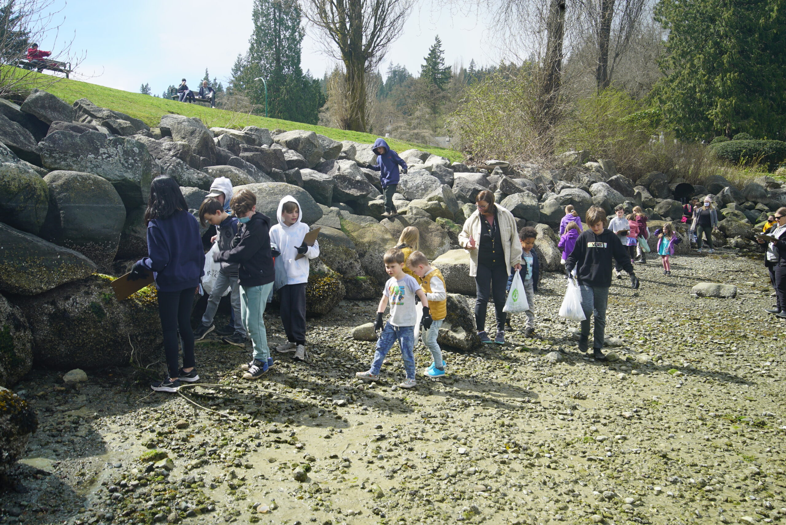 The Ocean Wise Shoreline Cleanup supported the school district to host litter cleanups at schools across North Vancouver, including training student leaders and providing supplies. The district-wide cleanup saw nearly 4,000 students of all ages picking up litter in their communities. Students sorted the litter for recyclable items and recorded their findings on data cards as citizen scientists. Litter removed from the school communities included single-use food and beverage items, paper, discarded textiles, and some random items including a tea kettle and a tire!