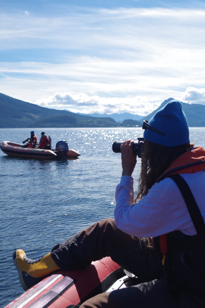 During her placement at NCCRI Sally was also involved in research and outreach activities, assisting with the data collection of harbour porpoise populations in the Prince Rupert area, as well as other research, primarily on the distribution and abundance of humpback whales. Through this she developed skills in photo ID work, boat handling, eDNA sample collection and processing, and learned how to use hydrophones and photo processing. Sally now works part-time for Ocean Wise’s NCCRI team!