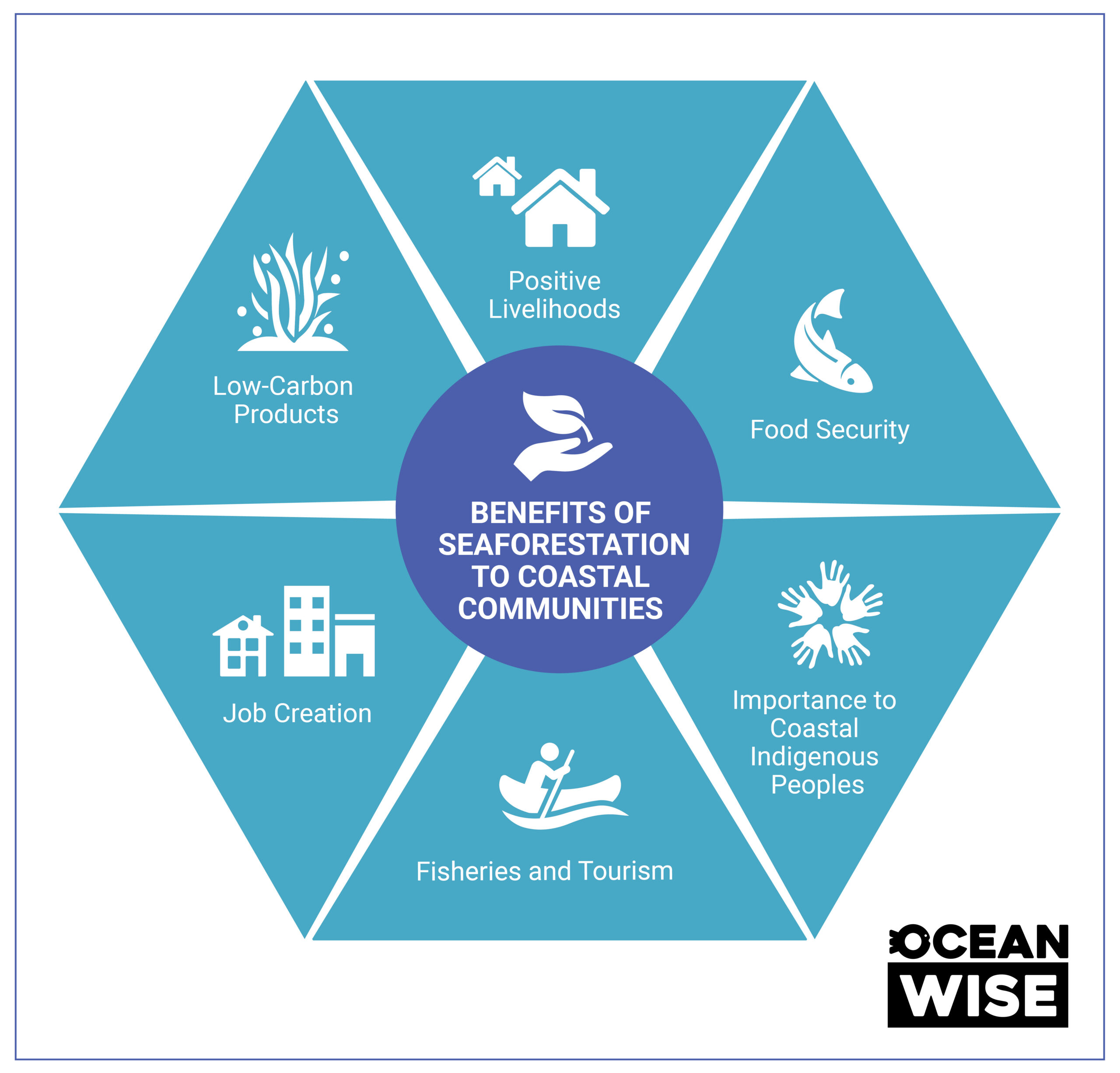 By expanding kelp restoration, protection and cultivation, British Columbia can provide significant removal of harmful greenhouse gases from the atmosphere, while realizing several co-benefits for the ocean, coastal communities and marine life. In addition to removing carbon dioxide from the atmosphere, seaforestation also improves the health of ocean ecosystems, restoring coastal fisheries, and creating environmentally focused jobs in British Columbia.