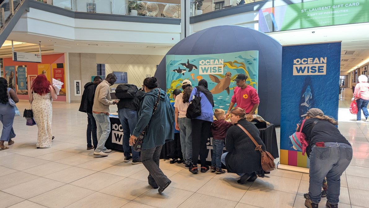 Dans les jours qui ont suivi, l’équipe a traversé le sud de l’Ontario jusqu’à Sarnia, où nous avons installé l’Ocean Wise Sea Dome au centre commercial Lambton. Tant de gens se sont présentés et pour beaucoup, c’était la première fois qu’ils apprenaient l’existence d’Ocean Wise.