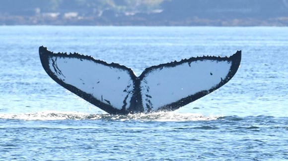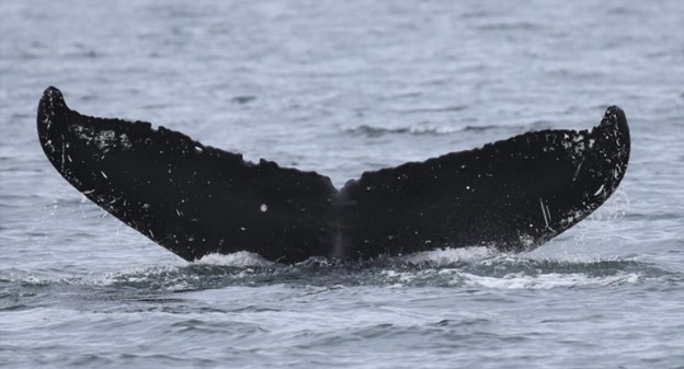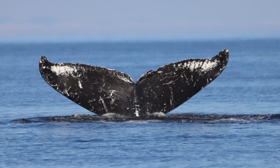 En utilisant un téléobjectif pour construire le catalogue, nous devons être capables de reconnaître les animaux que nous avons déjà vus et ceux qui sont nouveaux. Cela peut être fait en comparant les photos prises de chaque baleine que nous voyons. Lorsque les baleines à bosse plongent, elles sortent généralement leurs nageoires caudales de l’eau et lorsqu’elles descendent, nous pouvons voir le dessous de leur nageoire caudale. Leurs nageoires caudales sont totalement uniques pour chaque individu, comme nos empreintes digitales. Lorsque nous rencontrons une baleine au cours de la saison de chasse, nous prenons une photo de la partie inférieure de sa nageoire caudale et nous consultons notre catalogue pour voir si elle correspond à des images précédentes qui ont été enregistrées dans notre région. La plupart des baleines que nous voyons fréquemment peuvent être facilement reconnues. Si nous ne sommes pas sûrs de l’identité d’une baleine, nous cherchons rapidement dans notre catalogue et parfois… c’est une correspondance ! C’est passionnant de voir les mêmes baleines revenir au même endroit pour s’alimenter année après année, cela nous aide à comprendre comment les baleines à bosse s’étendent et utilisent la côte de la Colombie-Britannique. Parfois, il n’y a pas de correspondance, chaque année nous avons quelques nouveaux venus. Lorsque cela se produit, nous devons faire des recherches plus approfondies.