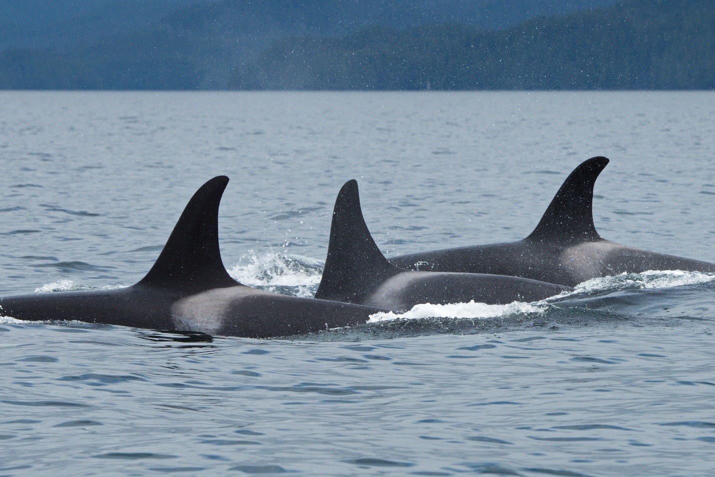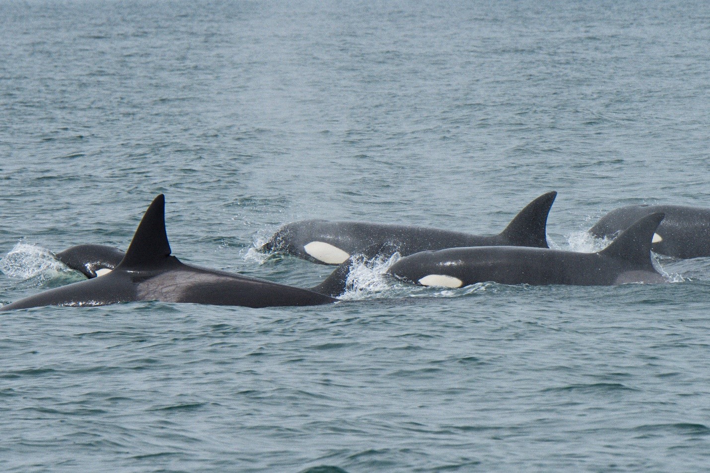 Nageoires dorsales des membres du groupe matrilineal A34 des épaulards résidents du Nord.