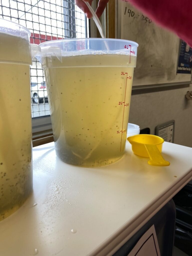 The idea for our project began when we had the opportunity to go sailing with YouthToSea. We were able to learn about different microorganisms in the ocean and this started our interest in the subject of phytoplankton. The main steps we needed to take to achieve our goal was to do background research, acquire materials, set up our project, and observe! For the set up, we had 3 buckets of salt water with air pumps, and then we put a phytoplankton starter culture into each bucket. A few weeks after putting the starter culture in the water, we discovered that it had bloomed (growing). It was so cool to see our planned steps come to life, and we are very thankful for the opportunity. It has been such a learning experience for the both of us.